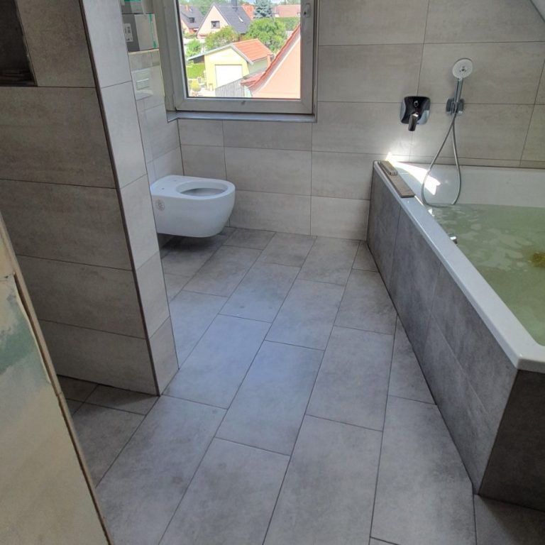 Wir fliesen Wände und Fußböden im Dünnbettverfahren und allen dazugehörigen Arbeiten wie Rausriss und Vorbereitung.